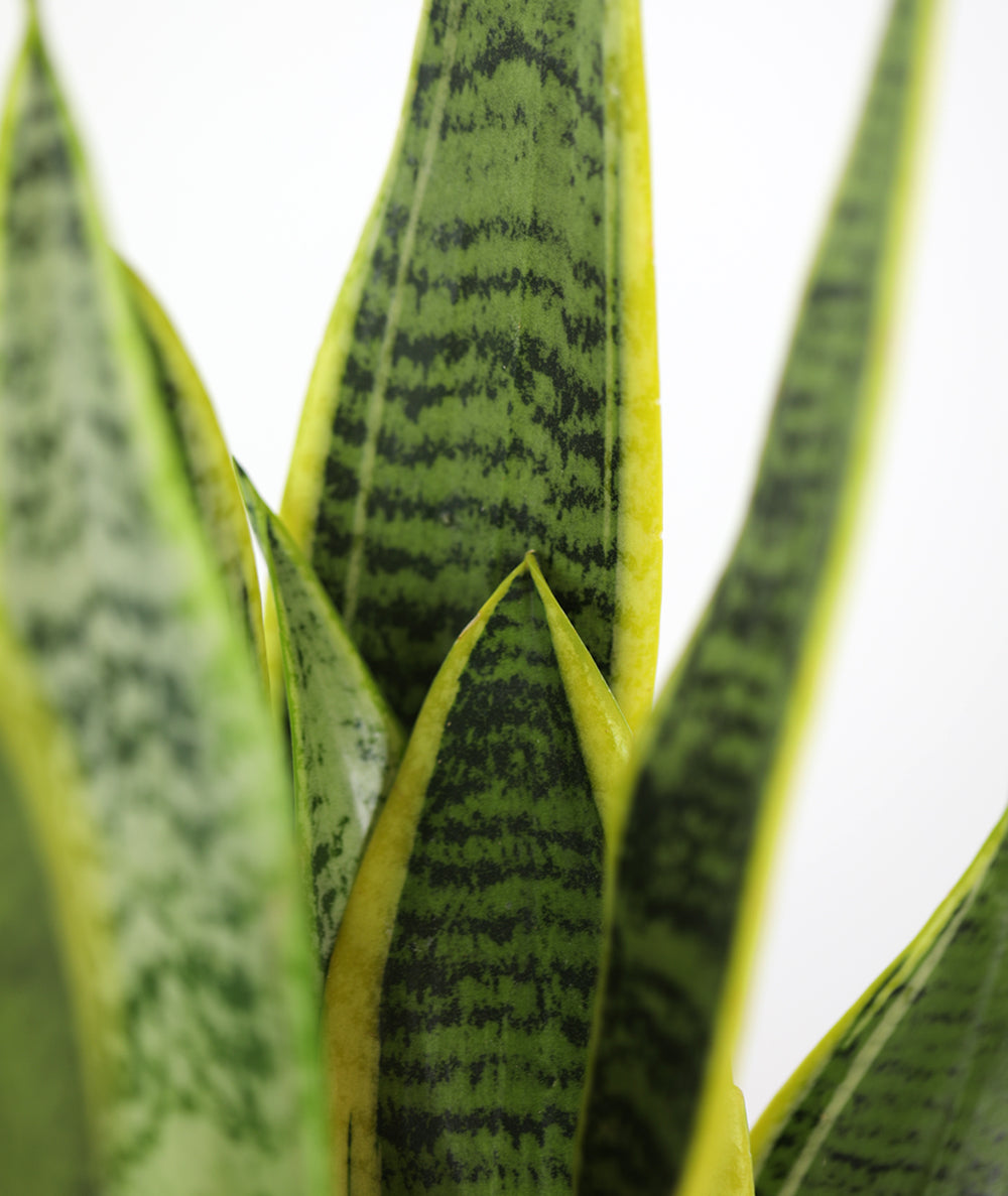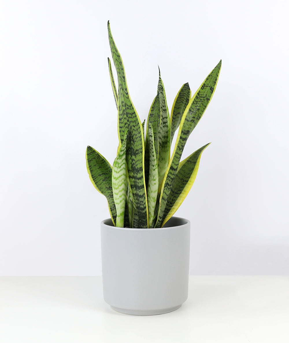 Also known as a “Snake Plant”, or “Mother-in-Law’s Tongue”, Sansevieria thrives off of minimal watering and all levels of sunlight, and is a great indoor air purifier. The Sansevieria Laurentii is unique for its yellow edges and can add structure to your space with its upright, compact form and rigid, pointy leaves.